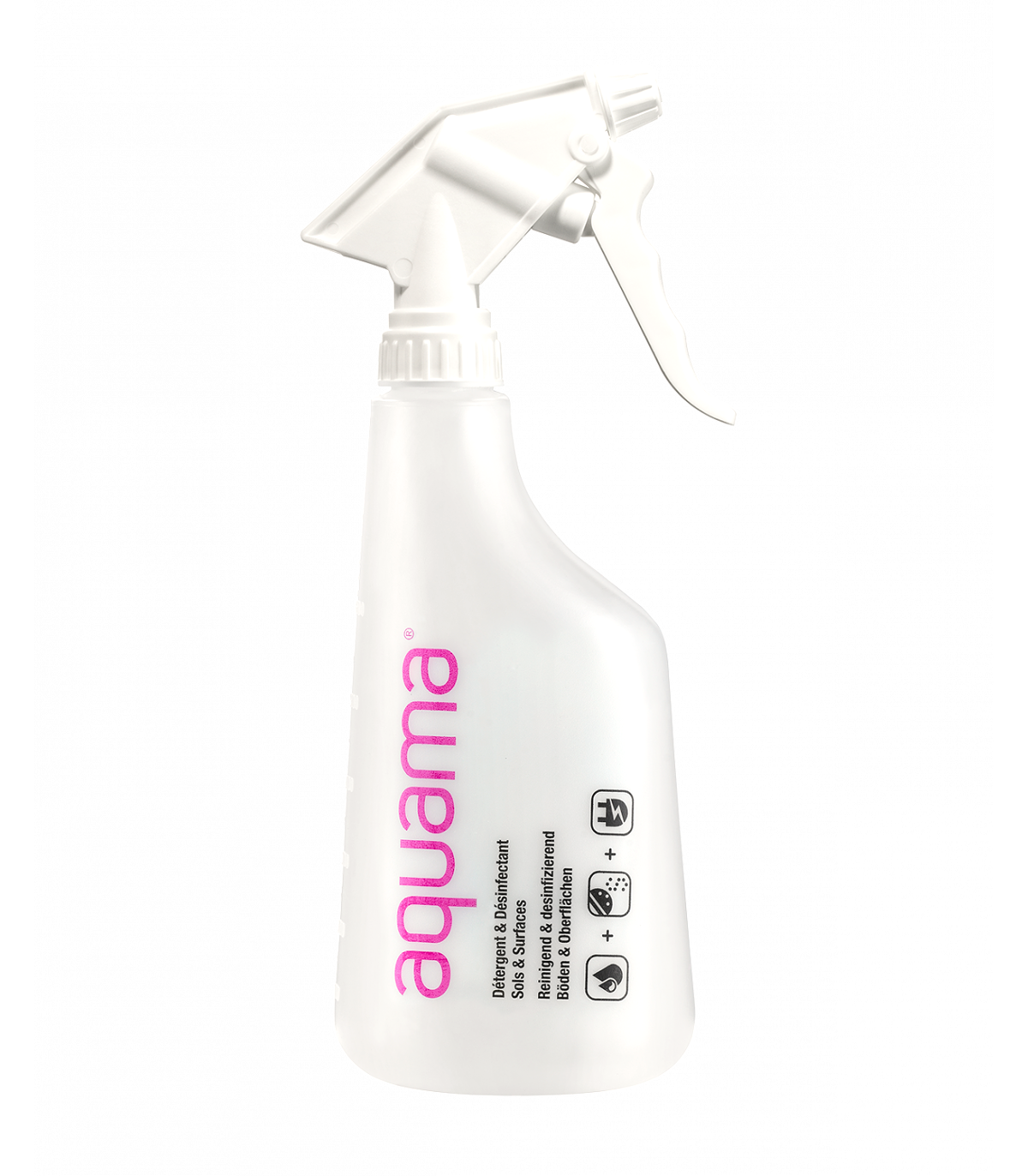 Le spray aquama®, résistant et simple d'utilisation, est conçu pour la pulvérisation en grande quantité. Le pulvérisateur à gâchette "trois doigts" offre un fonctionnement sans effort et un débit puissant de 2,2 ml par pression. Pression réglable, de la fine pulvérisation au jet direct.
